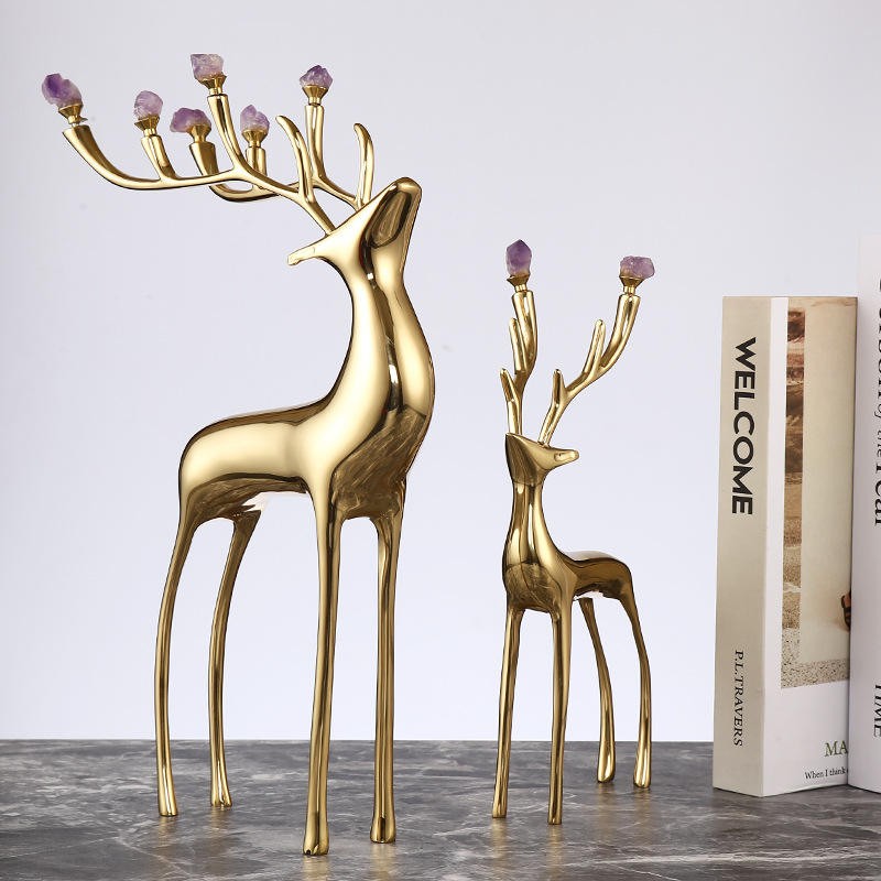 DR-NY Pure copper deer with amethyst modern home decor light luxury porch TV cabinet housewarming gift decoration items